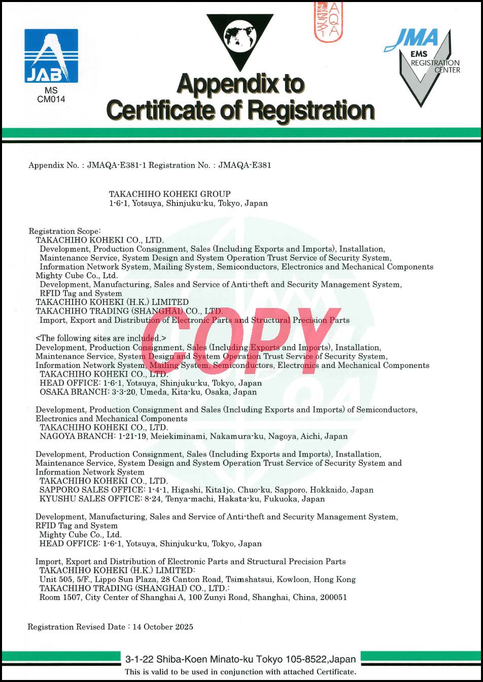 - Services listed in #1 above: Takachiho Koheki Co., Ltd.