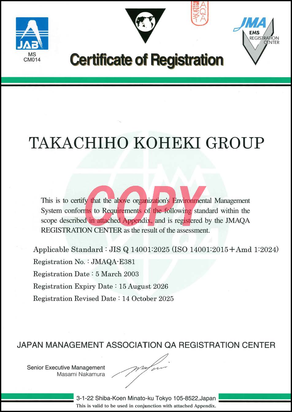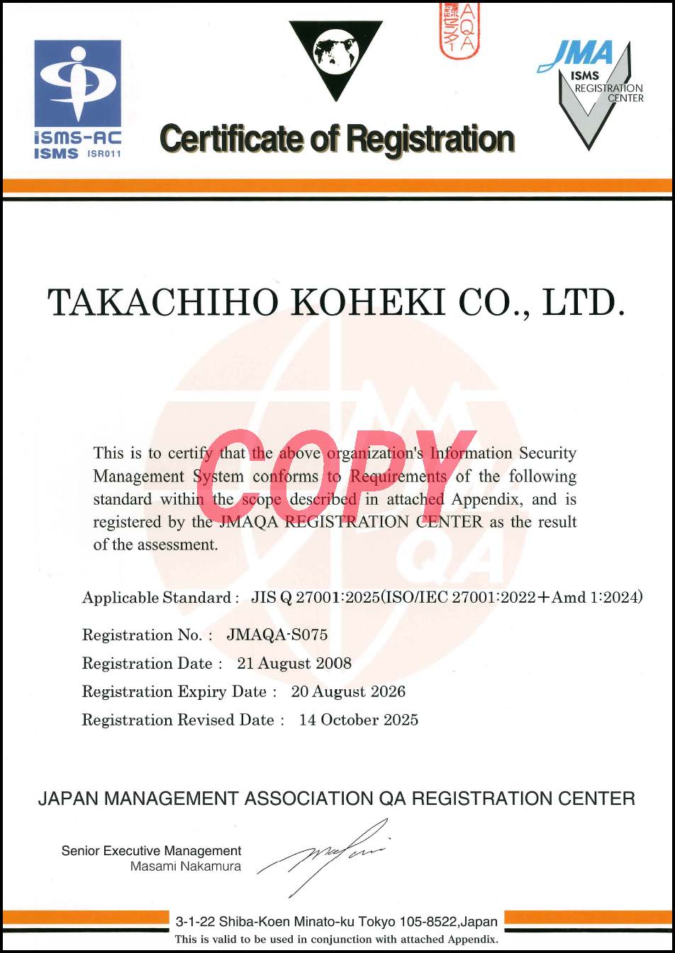 - Services listed in #3 above: Takachiho Koheki Co., Ltd.